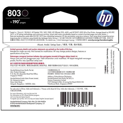惠普(HP)F6V21AA 803 墨盒 (适用Deskjet1112 2132)
