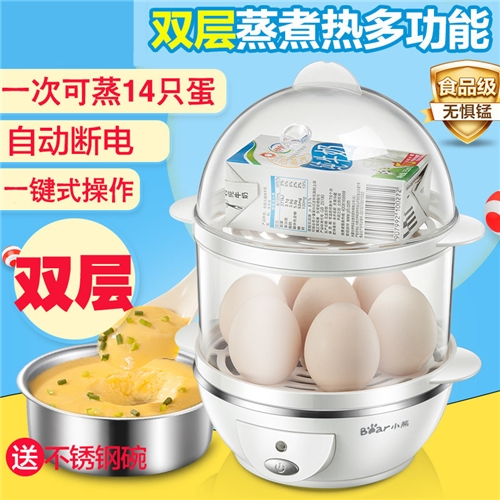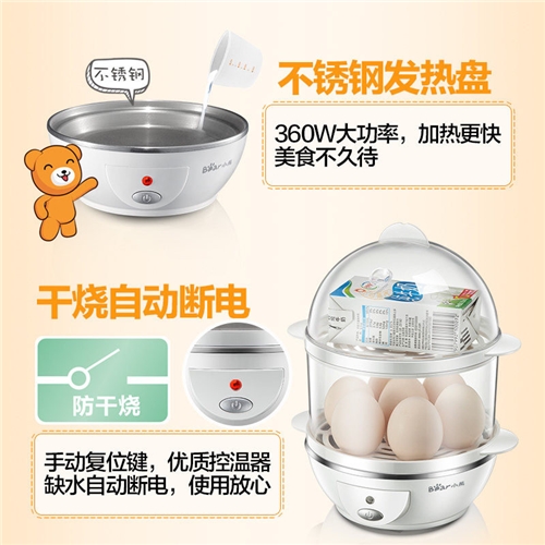 小熊(Bear) 煮蛋器ZDQ-206 双层蒸煮多功能 自动断电 白色家用多功能蒸蛋器