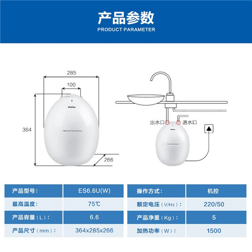 海尔(Haier)上出水小厨宝ES6.6U(W) 6.6L升大水量 电热水器 1500W大功率 省时省电