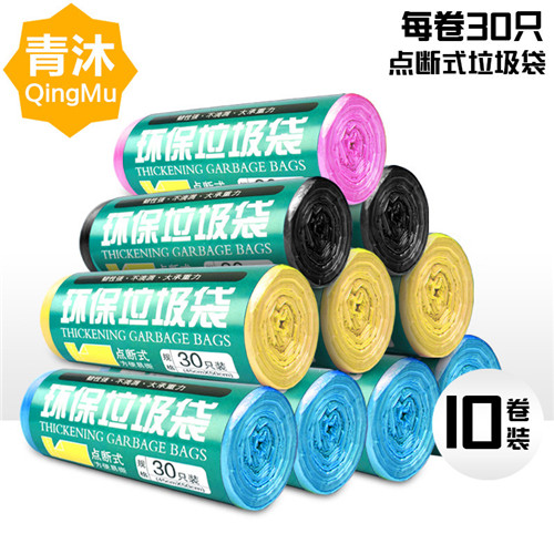 青沐 居家办公携便式环保生活垃圾袋每卷30只*10卷装颜色随机发放 颜色随机10卷