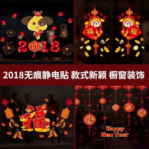 狗年福字静电贴节庆门窗装饰品春节元旦剪纸玻璃墙贴
