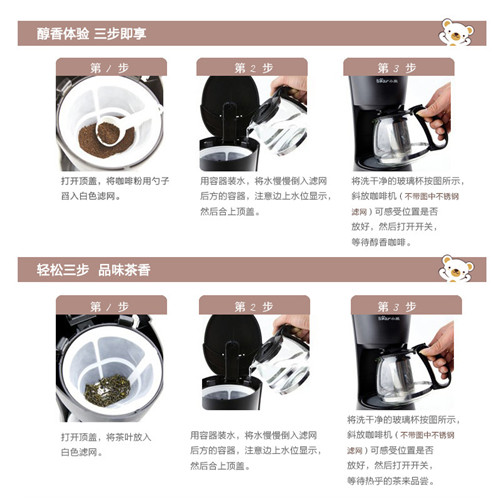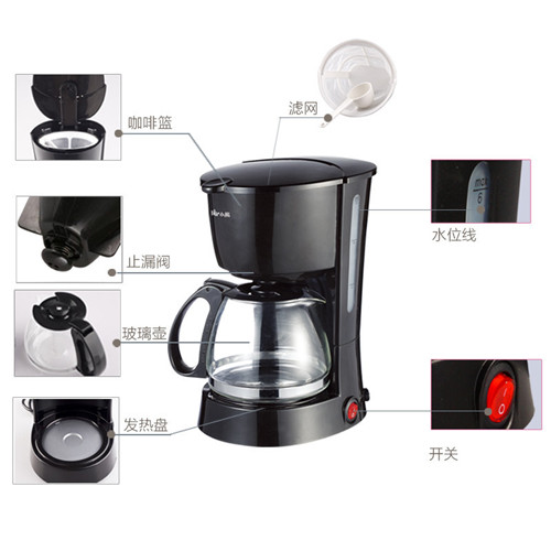 小熊(Bear) 咖啡机KFJ-403 600ml高密滤网 可拆部件易清洗 全自动滴漏式咖啡机泡茶壶