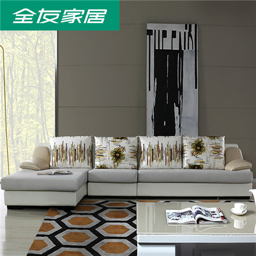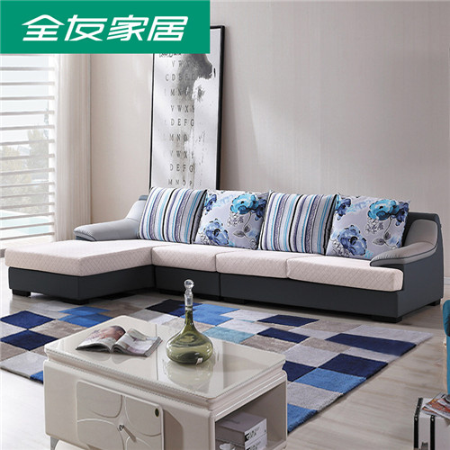 全友家私 皮布艺沙发 简约现代大小户型沙发 客厅套装组合 客厅家具73018 荷塘月色正向沙发