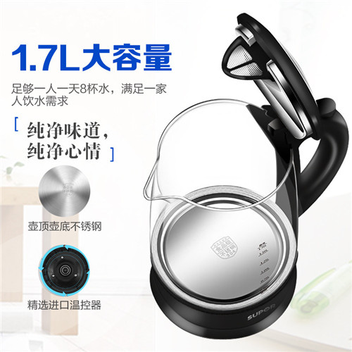 苏泊尔(SUPOR) 玻璃电热水壶 SWF17E25C 热水壶高硼硅玻璃电热水壶