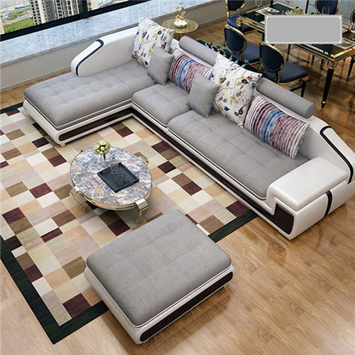 欧卡森新款可拆洗布艺沙发 现代简约小户型客厅贵妃组合转角布艺沙发 双人+单人+贵妃+脚踏+边几