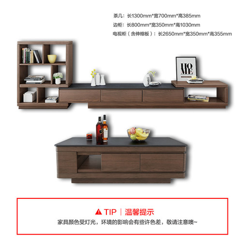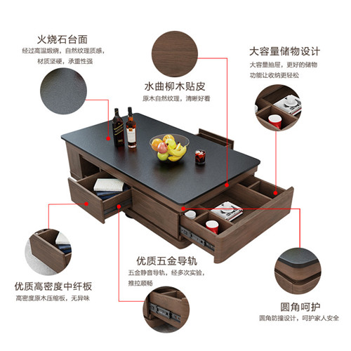 华纳斯HUANASI 茶几 可伸缩火烧石面茶几简约现代茶桌客厅家具 1.3M茶几(火烧石面)