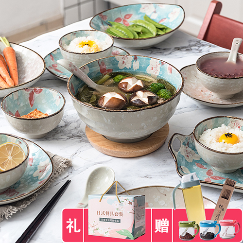 6人陶瓷日式家用碗筷碗盘盘子碗碗碟餐具饭碗套装套碗景德镇漫喵