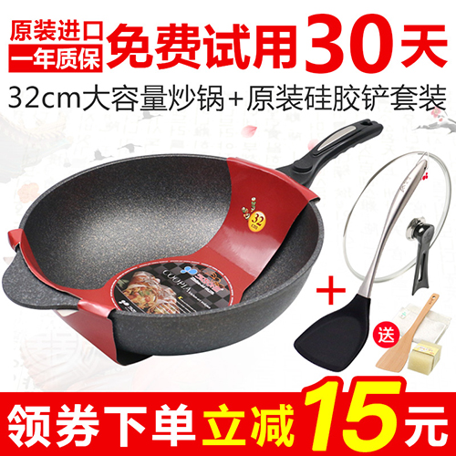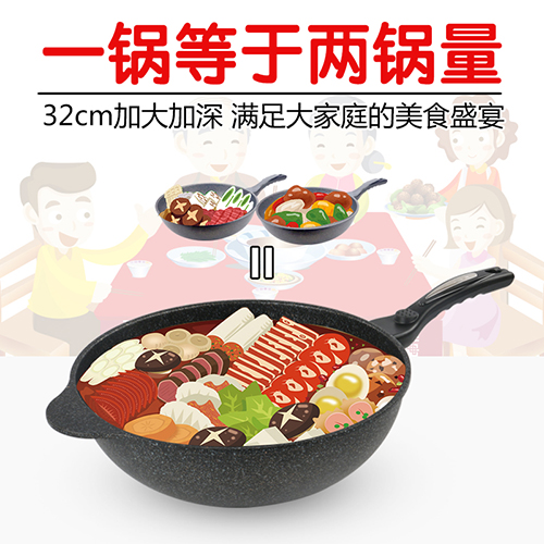 韩国麦饭石不粘锅炒锅32cm加深加大无油烟电磁炉燃气家用炒菜锅具