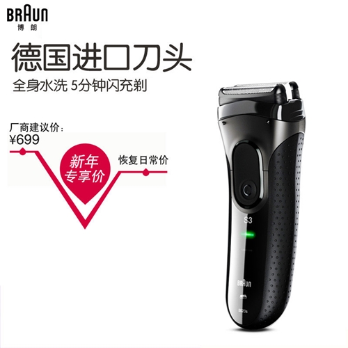 博朗(Braun电动剃须刀 3020s 德国进口刀头 全身水洗 充插两用 刮胡刀