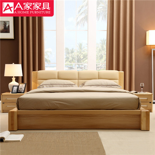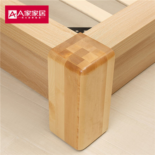 A家家具 床 简约现代 双人床 实木床 木质床原木色 1.5米1.8米 软皮床卧室套装家 1.5米排骨架