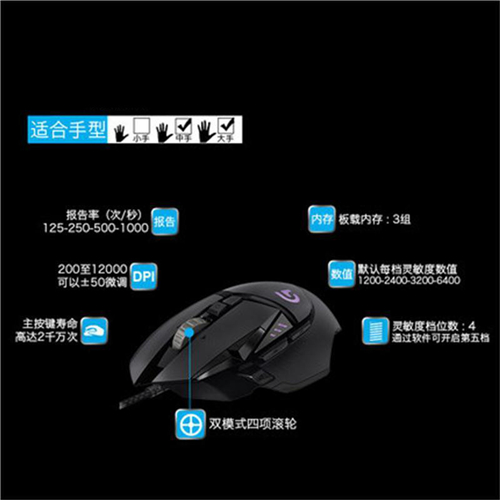 罗技(Logitech)G502有线家用笔记本电脑守望先锋LOL/CF/DOTA 绝地求生FPS USB 光电 吃鸡鼠标