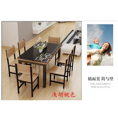 现代简约餐桌椅组合 家用大小户型钢化玻璃餐桌长方形饭桌小吃桌 120*70一桌6椅升级版