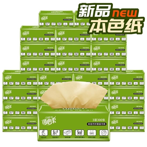可心柔COROU家庭装抽纸国产短幅三层28包本色竹浆抽纸纸巾面巾纸餐巾纸整箱量贩批发
