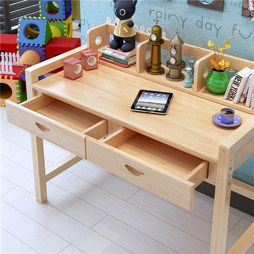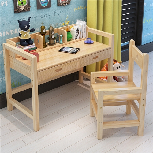 美梦居 学习桌 实木书桌可升降型电脑桌 中小学生课桌套装 升降清漆120*50*75cm一套