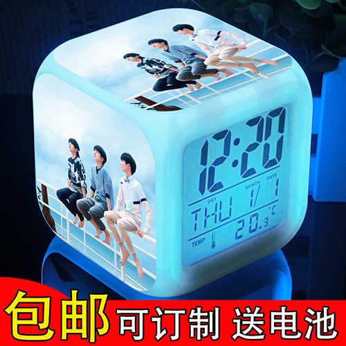 Tfboys王源王俊凯易烊千玺同款周边海报官方生日礼物七彩小闹钟