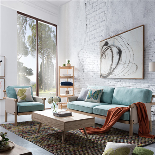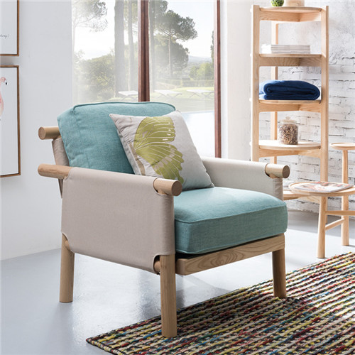 龙森家具 北欧实木布艺沙发 白蜡木沙发客厅沙发组合北欧风 单人+三人深胡桃色