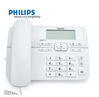 飞利浦 CORD118 电话机 来电显示 固定电话 座机 冠军型号 免电池 超高品质 (白色)
