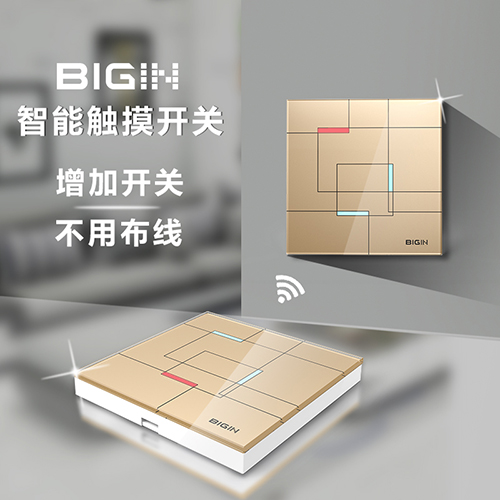 BIGIN智能触摸遥控开关 钢化玻璃随意贴开关 无线双控免布线开关