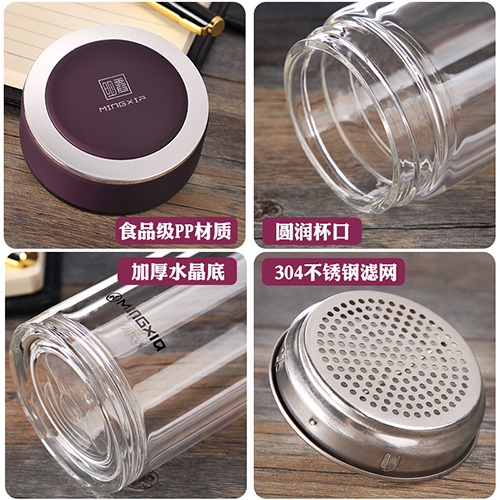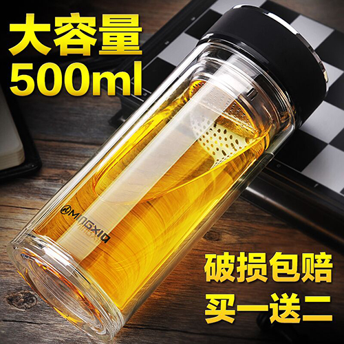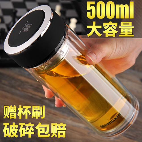 【天天特价】双层玻璃杯男便携水杯带盖茶杯过滤杯子大容量500ml