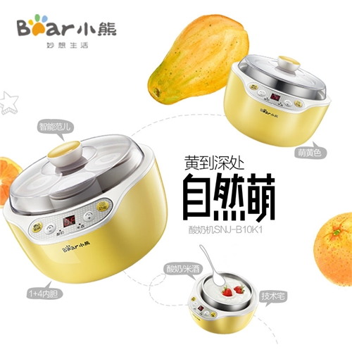 小熊(Bear)酸奶机SNJ-B10K1 家用全自动 不锈钢内胆 恒温智能定时 陶瓷分杯米酒机发酵机