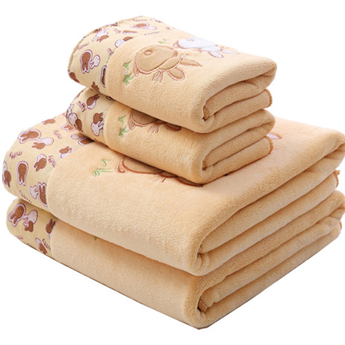 浴巾超强吸水纯棉全棉柔软成人男女洗脸家用速干毛巾两件套 米白萌兔套装 70*140cm