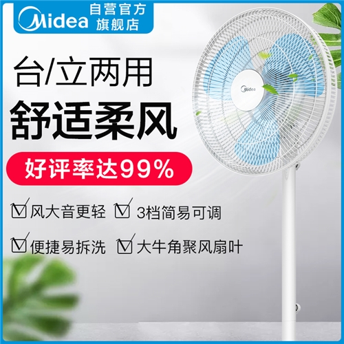 美的(Midea)三叶大风量家用静音电风扇台立两用落地静音扇易拆洗风扇 SAB40A