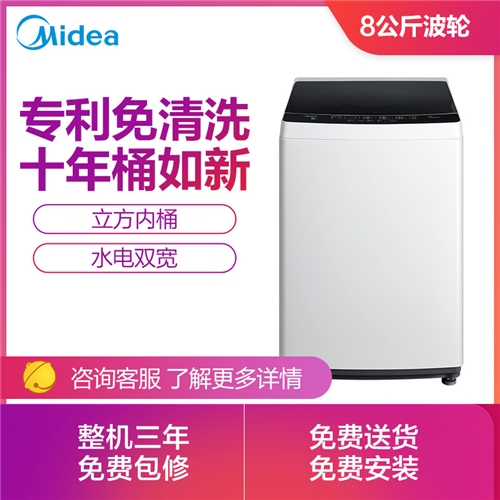 美的(Midea)波轮洗衣机全自动 8公斤专利免清洗十年桶如新 立方内桶 水电 双宽 MB80ECO