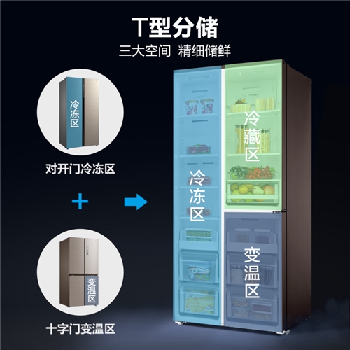 美的(Midea)443升 对开三门冰箱家用双变频风冷无霜零度保鲜玻璃面板电子控温节能 BCD-443WKGPZM(E)