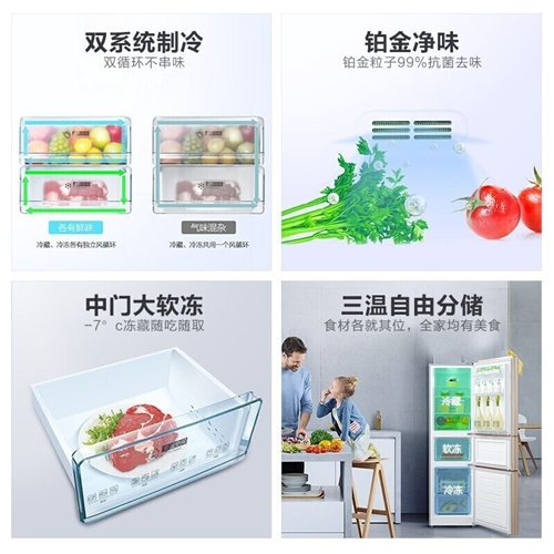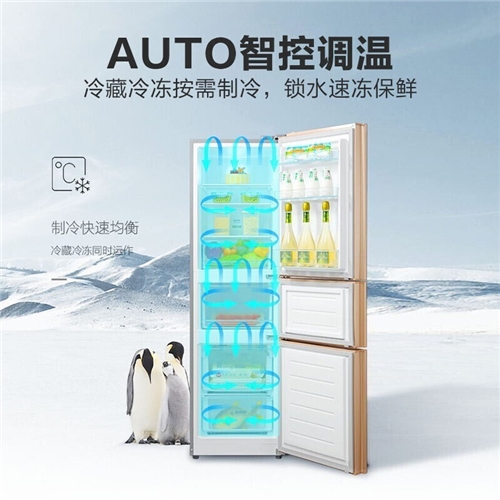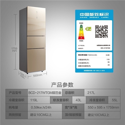 美的三门节能冰箱(Midea)BCD-217WTGM 风冷无霜冰箱 家用节能 冷藏冷冻冰箱 静音 双循环 层峦金