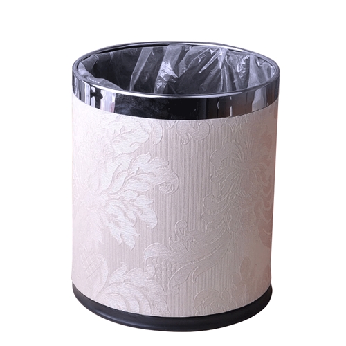 免脚踏无盖家居收纳桶古典花纹皮革垃圾筒
