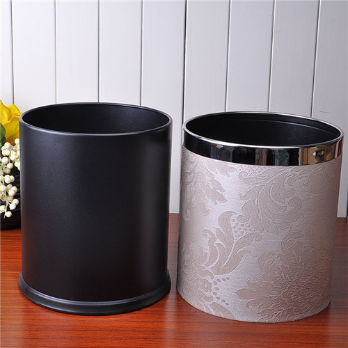 古典皮革双层垃圾桶筒 不锈钢无盖纸蒌时尚创意欧式家用 新古典花纹