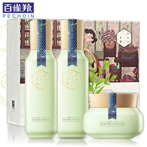 百雀羚套装三生花控油清肌水感平衡三件套面部护理礼盒护肤品女