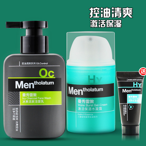 曼秀雷敦男士套装护肤品擦脸油水凝霜50g+冰爽活炭洁面乳150ml 洗面奶加润肤露滋润保湿面霜补水控油