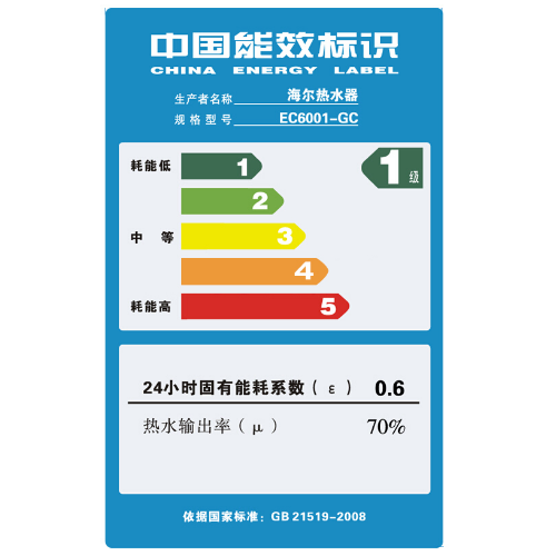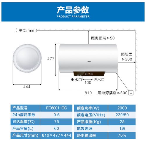 Haier/海尔热水器60升遥控式电热水器EC6001-GC 1级能效 健康抑菌 2000W速热家用