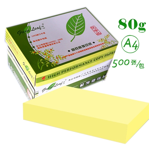 绿叶(GreenLeaf) 彩色复印纸 A4 80g 500p 黄色