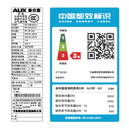 奥克斯(AUX)1.5匹 变频 快速冷暖 挂机空调KFR-35GW/BpHYG+3