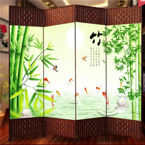 包安装山水系列屏风 现代简约环保油画实木纯手工编织折叠办公隔断H160-1 竹A单面一片高170宽50厘米