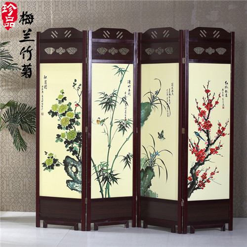 赛森 复古中式屏风批发客厅酒店移动屏风玄关隔断实木屏风隔断 梅兰竹菊