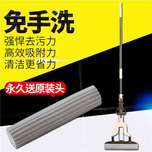 拖把吸水海绵对折挤水伸缩家用厚钢管胶棉拖布地拖免手洗 卡其色标准杆(共1个拖把头)