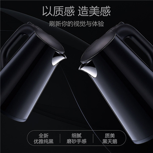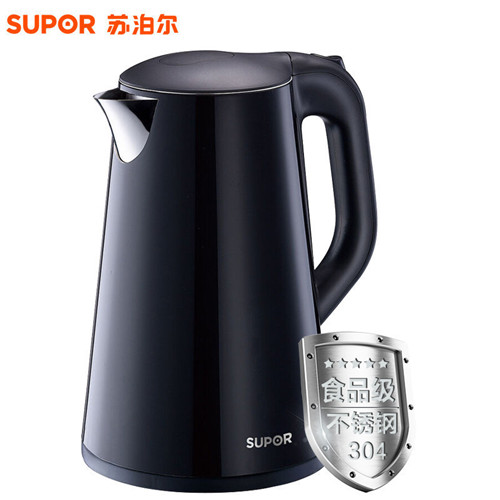 苏泊尔(SUPOR)家用电热水壶 SWF17E20C 304不锈钢 1.7L 双层保温防烫 墨黑色 烧水壶
