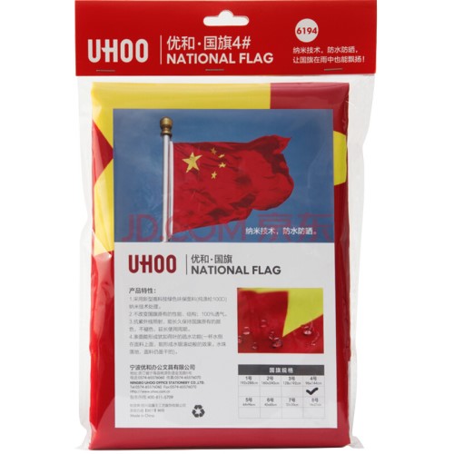 优和(UHOO) 6194 中国国旗 4号 96*144cm 1面旗帜/包 纳米防水防晒 五星红旗