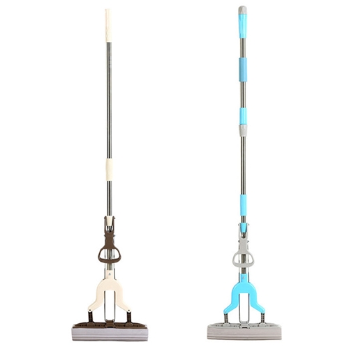 拖把吸水海绵对折挤水伸缩家用厚钢管胶棉拖布地拖免手洗 卡其色标准杆(共1个拖把头)