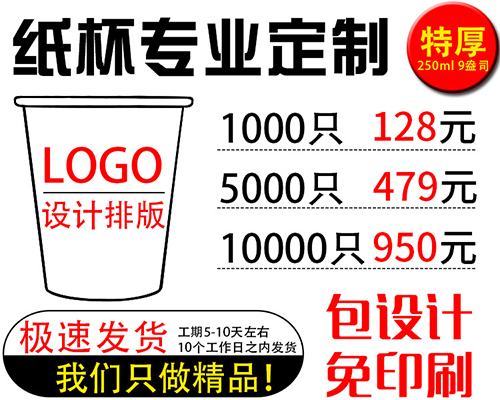 纸杯一次性杯子批发包邮1000只整箱加厚商务广告纸杯定做印logo