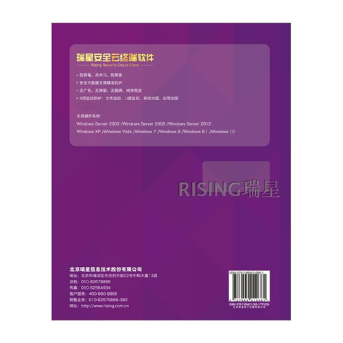 RISING瑞星安全云终端软件 三年三用户盒装标准版 瑞星杀毒软件 适合小企业及家庭使用