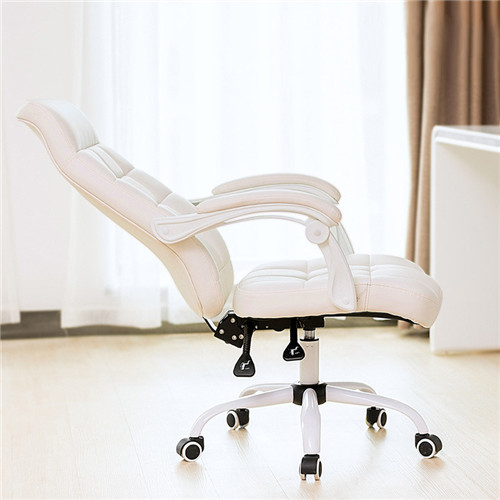 八九间 家用电脑椅白色办公椅子 卧室旋转椅靠背凳学生椅时尚简约 黑色-PU-弓形脚