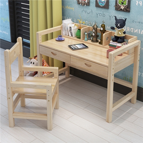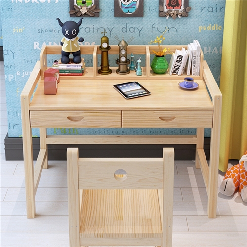 美梦居 学习桌 实木书桌可升降型电脑桌 中小学生课桌套装 升降无漆80*50*75cm一套