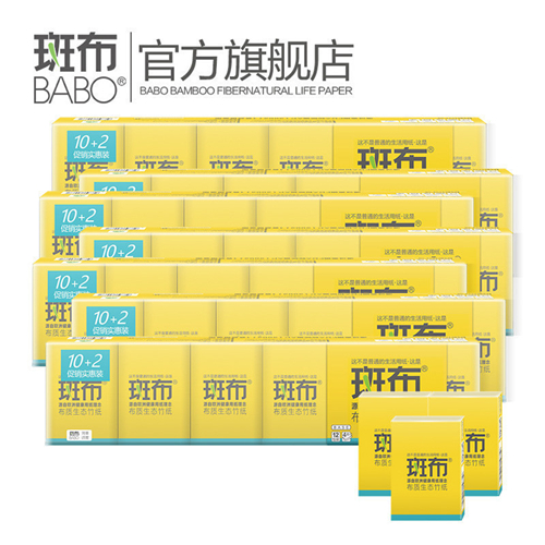斑布(Babo)竹浆手帕纸8片*60包 4层 加厚竹纤维卫生纸便携随身面巾纸不漂白